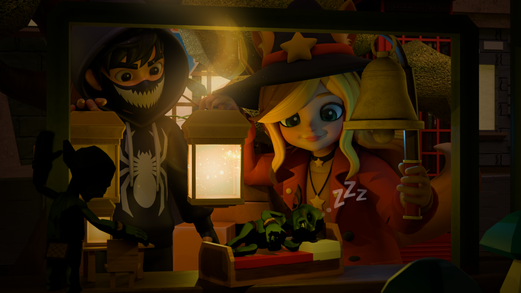 😴 Улицы заполонили сонные гоблины — маленькие проказники в ночных колпаках, которые никак не хотят просыпаться.
