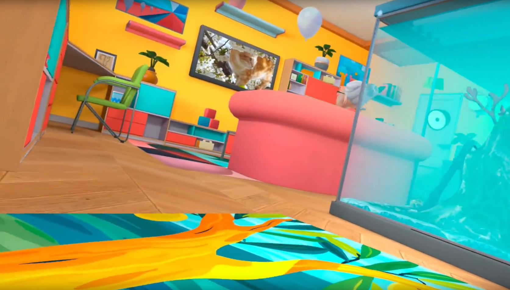 Игрок может бродить по всем комнатам дома, заглядывать в укромные уголки, забираться на шкафы и подоконники, изучать предметы интерьера. Дом наполнен секретами и небольшими загадками.